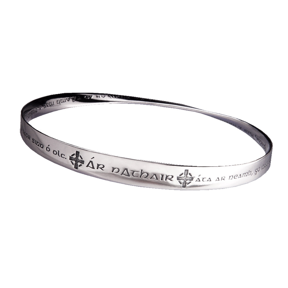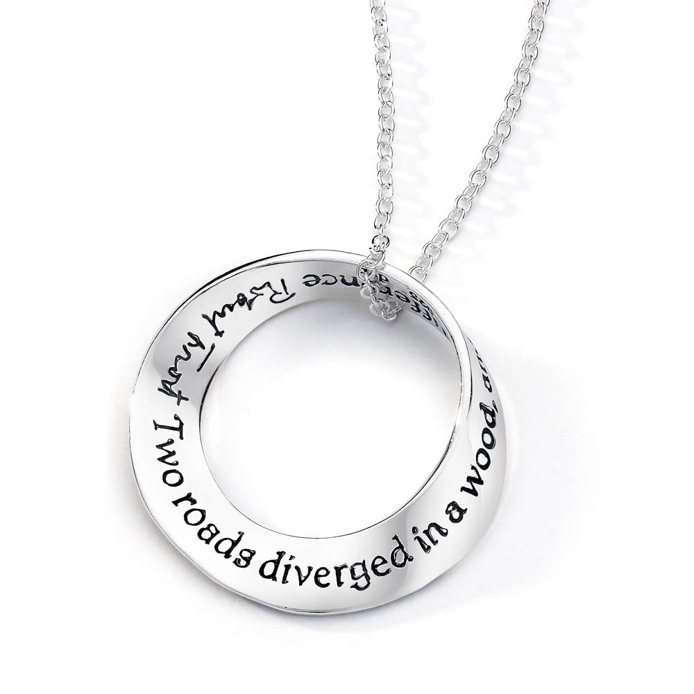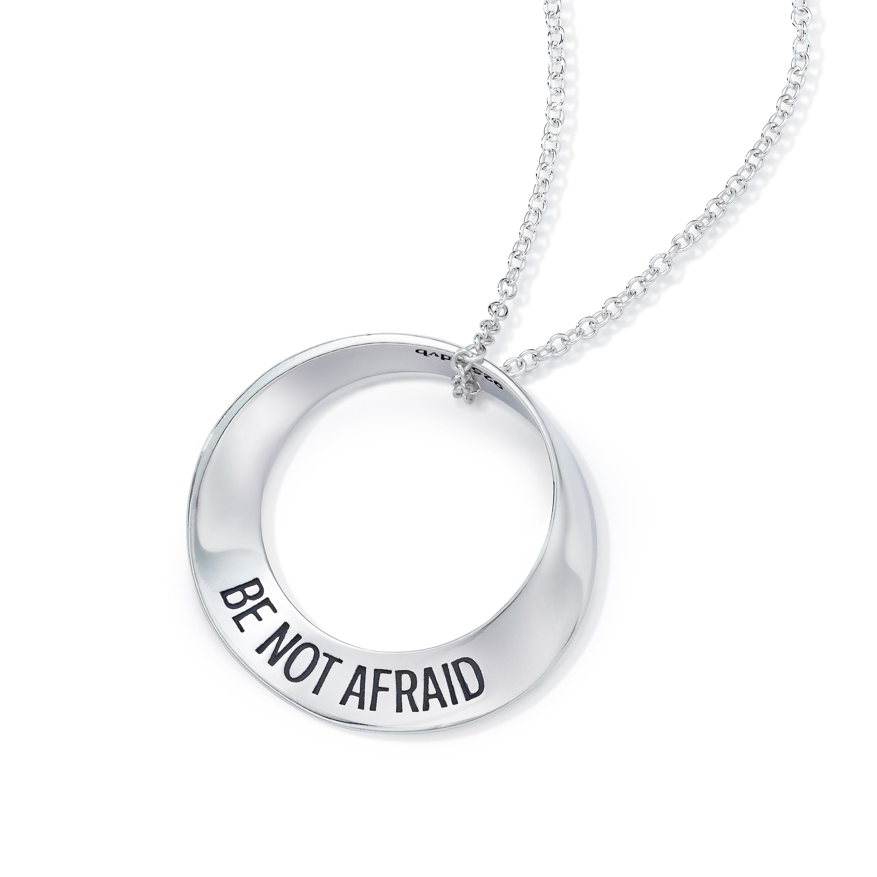 The mobius is our signature shape and we were one of the first jewelers to deduce how to reproduce it via the lost wax casting method. Named after the German mathematician August Ferdinand Möbius [1790-1868], the mobius represents the seeming paradox of a plane without end or one of infinite length. As such, it became accepted as a symbol for infinity. The oval mobius bracelets fit comfortably, turning easily on the wrist, so that the wearer can be reminded of the message at a glance. The single mobius necklace moves on the chain when worn, changing its appearance continually, while the message remains constant. Our new double mobius necklace with its flowing, complex shape is an exciting addition to the collection, allowing for a longer message than the single mobius. The engraved message on these pieces repeats around the plane into infinity.